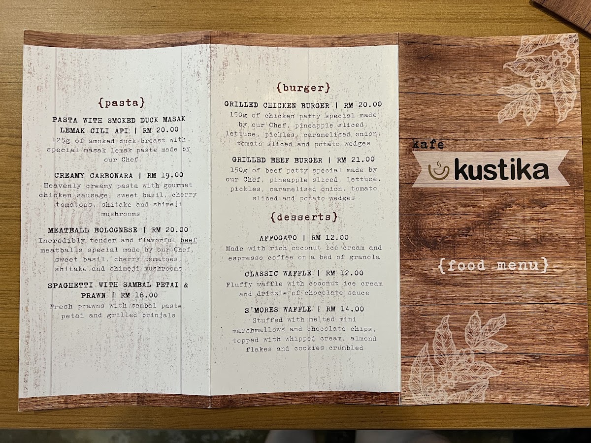 Welcome to Kafe Kustika, a delightful café situated in the heart of Alam Damai, Cheras. Here, a diverse menu awaits, offering a culinary journey blending local delicacies with Western favorites. Indulge in their Pasta Beef Bolognese, rich with ground beef and fresh basil, or savor the unique Pasta Smoked Duck Masak Lemak Cili Api, showcasing tender smoked duck in a spicy coconut sauce.